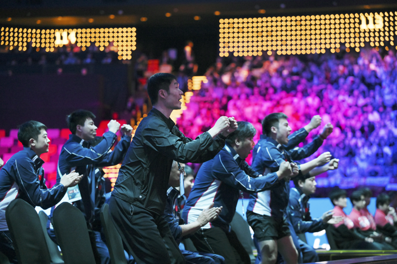 两年前的釜山世乒赛男人团体决赛中,中国队横扫法国队赢得十一连冠