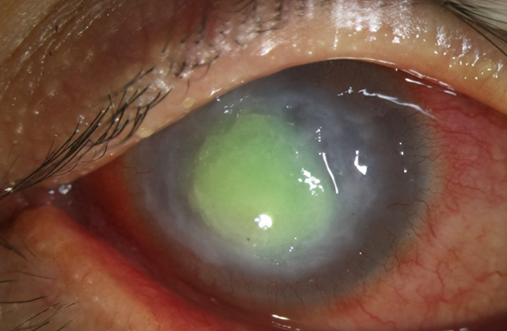 第二天醒来,杨先生嗅觉左眼又红又痛,还伴有畏光、啼哭等症状。他立即取下隐形眼镜,以为休息几天就能好转。但是,四天后,情况不仅莫得缓解,左眼角膜反而巩固变白,见识急剧下跌。