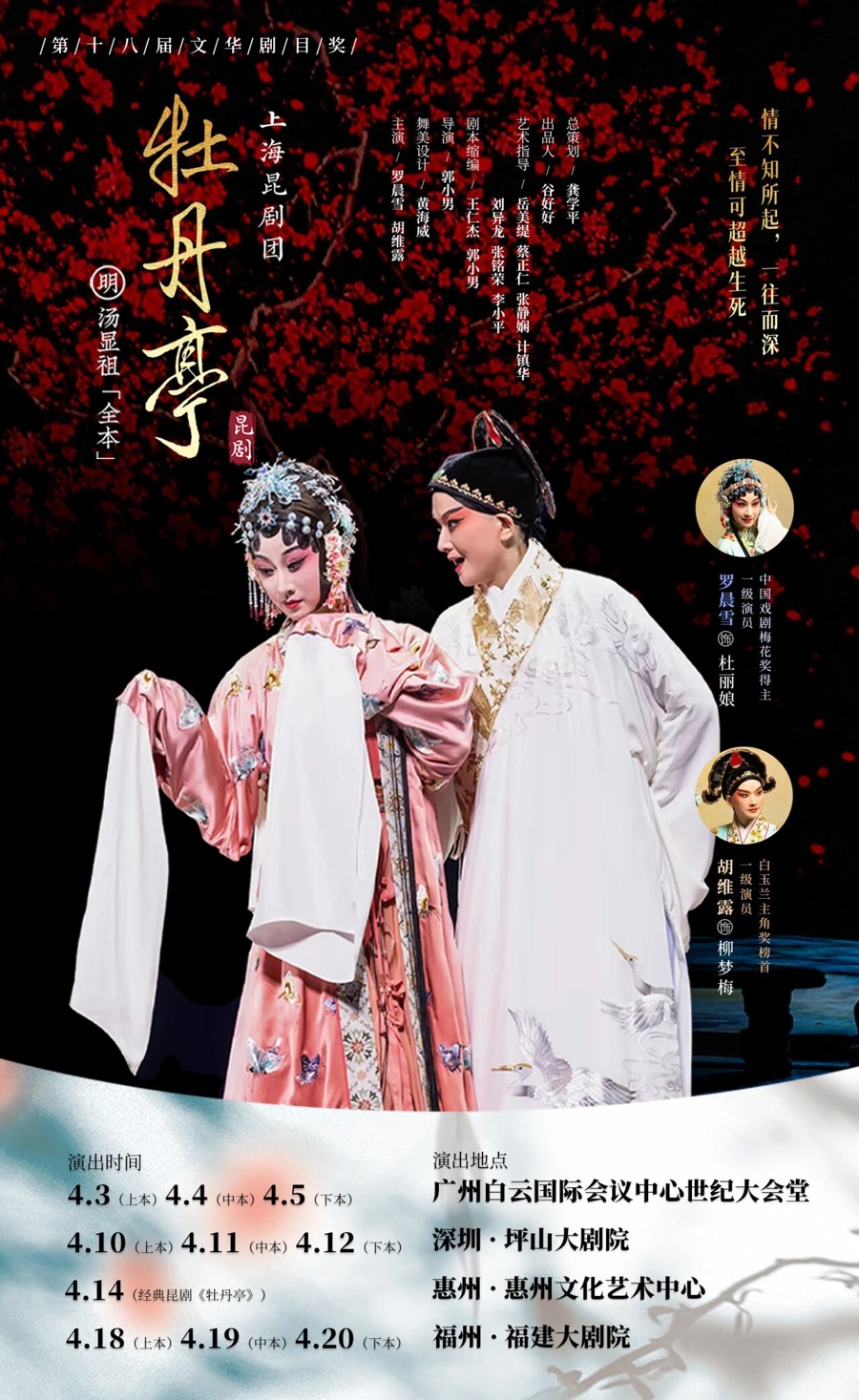 4月3日起至5日,上海昆剧团的全本《牡丹亭》将在广州白云海外会议中心世纪大礼堂亮相,精良开启牡丹·四梦——2026年世界巡演的路径。接下来,全本《牡丹亭》与《临床四梦》这两部戏曲大家汤显祖的绝代巨作,将连续登陆广州、深圳、福州以及北京、天津等10个城市。