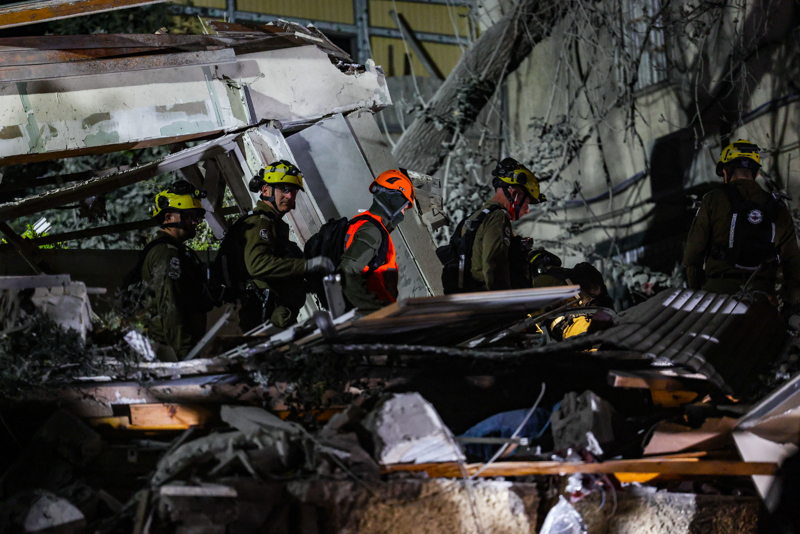 4月5日,在以色列北部城市海法,济急响应东说念主员在遭袭现场责任。