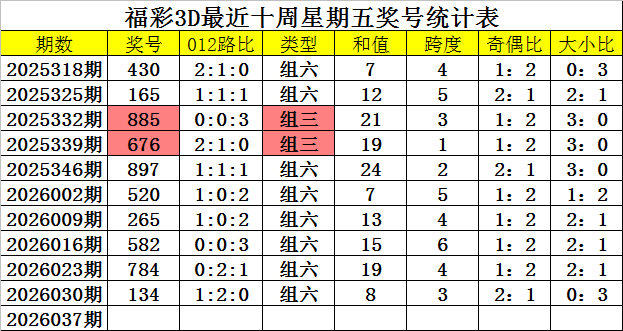 跨度分析:最近周五跨度出现限度在1-6区间,跨度比拟集会,上周五跨度为3,跨度着落1个点位,本期看好跨度飞腾,参考跨度4。